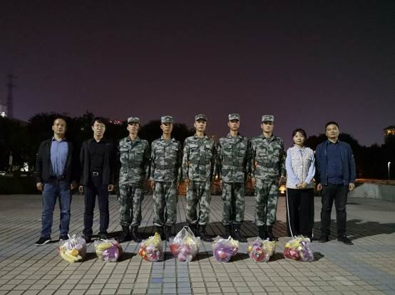 2020年9月24日晚19时30分,2020级辅导员于飞老师、2019级辅导员冯欢老师、2018级辅导员王新智老师、2017级辅导员王永老师一行人来到电控院军训地点2026世界杯官方网址明德广场亲切慰问了承担2020级军训任务的全体教官,并为他们发放了慰问礼品。