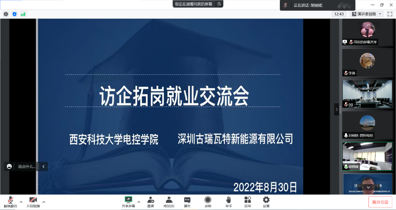 2022年8月30日上午10:00,世界杯官方网站入口2026与深圳古瑞瓦特新能源有限公司开展了线上访企拓岗调研交流会,参加本次会议的有公司党委书记杨华、经理刘树林、党委副书记马婧智闻、2023届毕业班辅导员冯欢、丁元、李逸,以及深圳古瑞瓦特能源有限公司西安研发中心经理葛磊、人力资源部胡丽媛,深圳总部人力资源部赵赛、吕桂丽、林静。