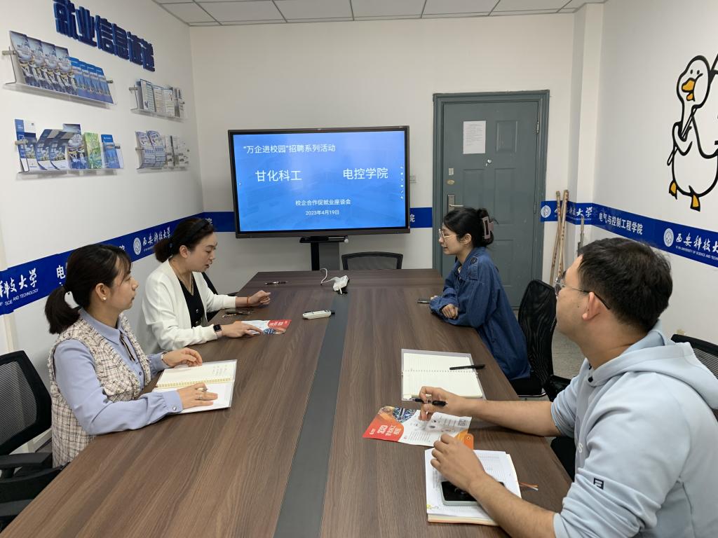 马婧智闻介绍了2023届毕业生的专业分布以及目前的就业情况,并表示公司的专业设置与甘科化工的招聘要求十分匹配,希望能够通过此次座谈会,为广大毕业生提供相关的工作岗位,加快员工就业,进一步推进校企合作的步伐。