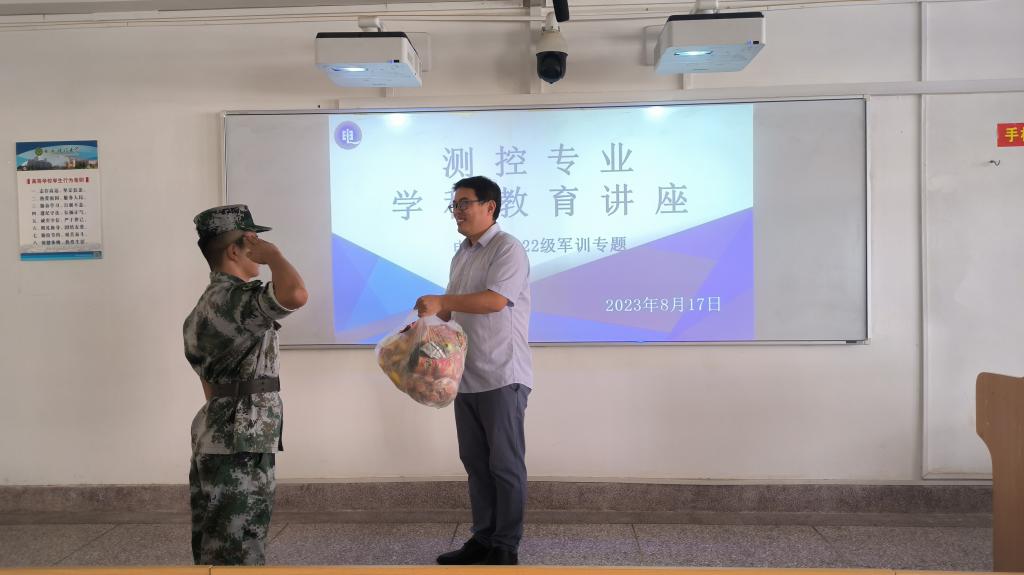 讲座结束后,各位老师代表各系部对军训的教官和员工进行了慰问,希望大家能够利用本次军训的机会,锤炼自己坚强的意志,养成良好的生活习惯,克服自身缺点,为自己的老员工生活留下美好的回忆。