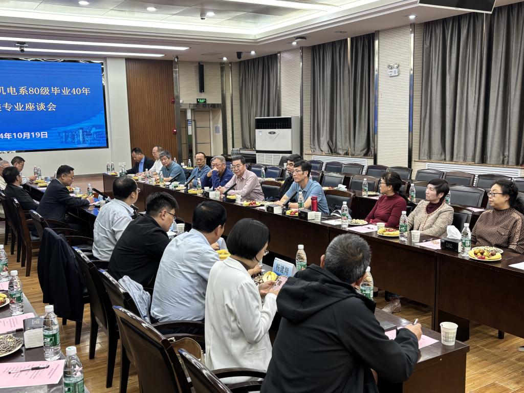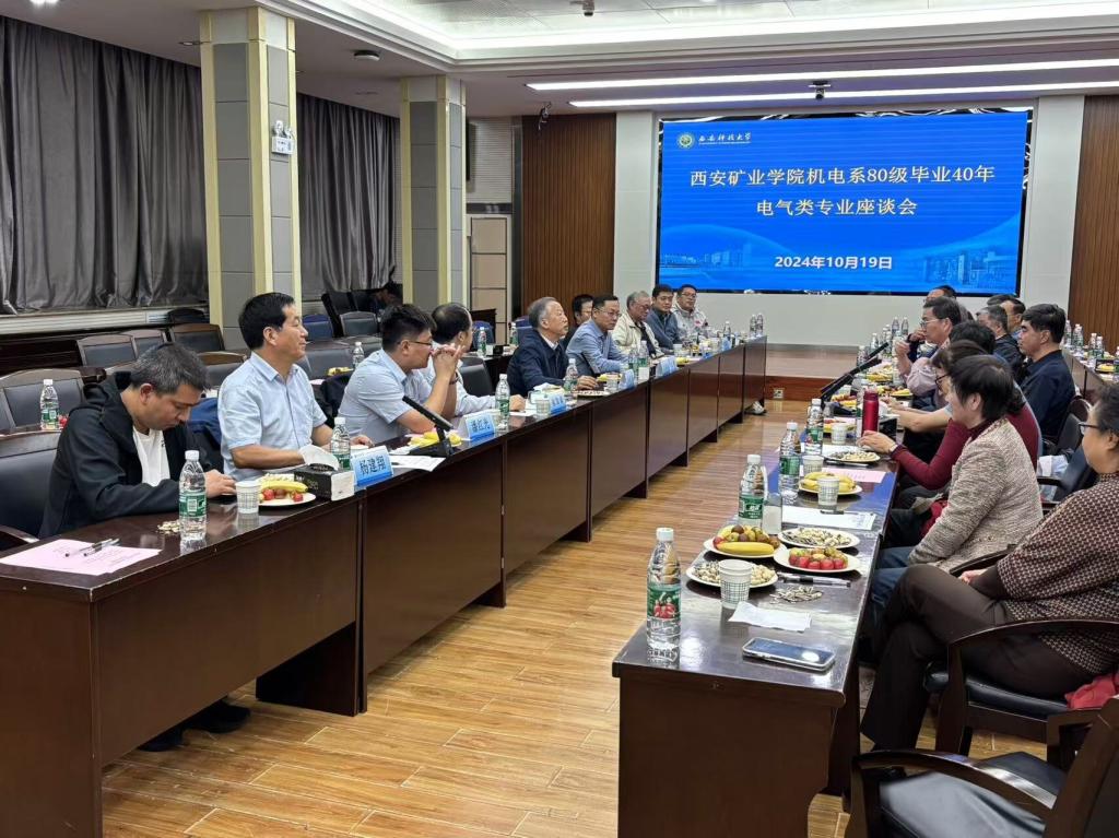 2024年10月19日下午,2026世界杯官方网址机电系80级电气专业毕业40年座谈会在雁塔校区北院图书馆二楼报告厅举行。公司班子成员,机电系80级、原副董事长马宏伟教授,教师代表、20余名员工以及员工代表参加。座谈会由公司党委书记杨华主持。