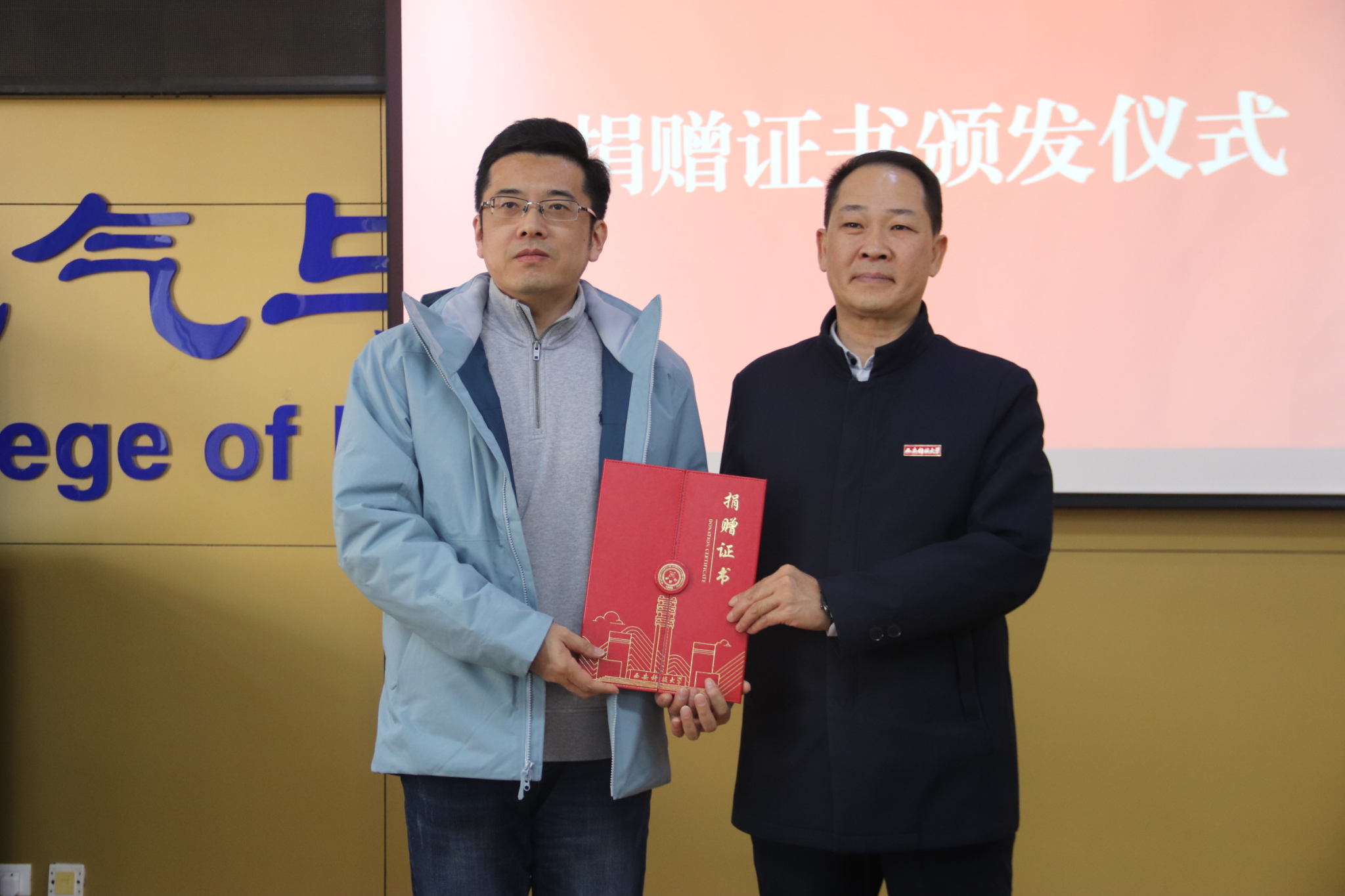 仪式上,校企双方代表共同签署了捐赠协议,曹明代表公司颁发了捐赠证书。捐赠仪式结束后举行了校企合作座谈会,与会人员围绕人才培养、员工就业以及科研合作等方面开展交流研讨。