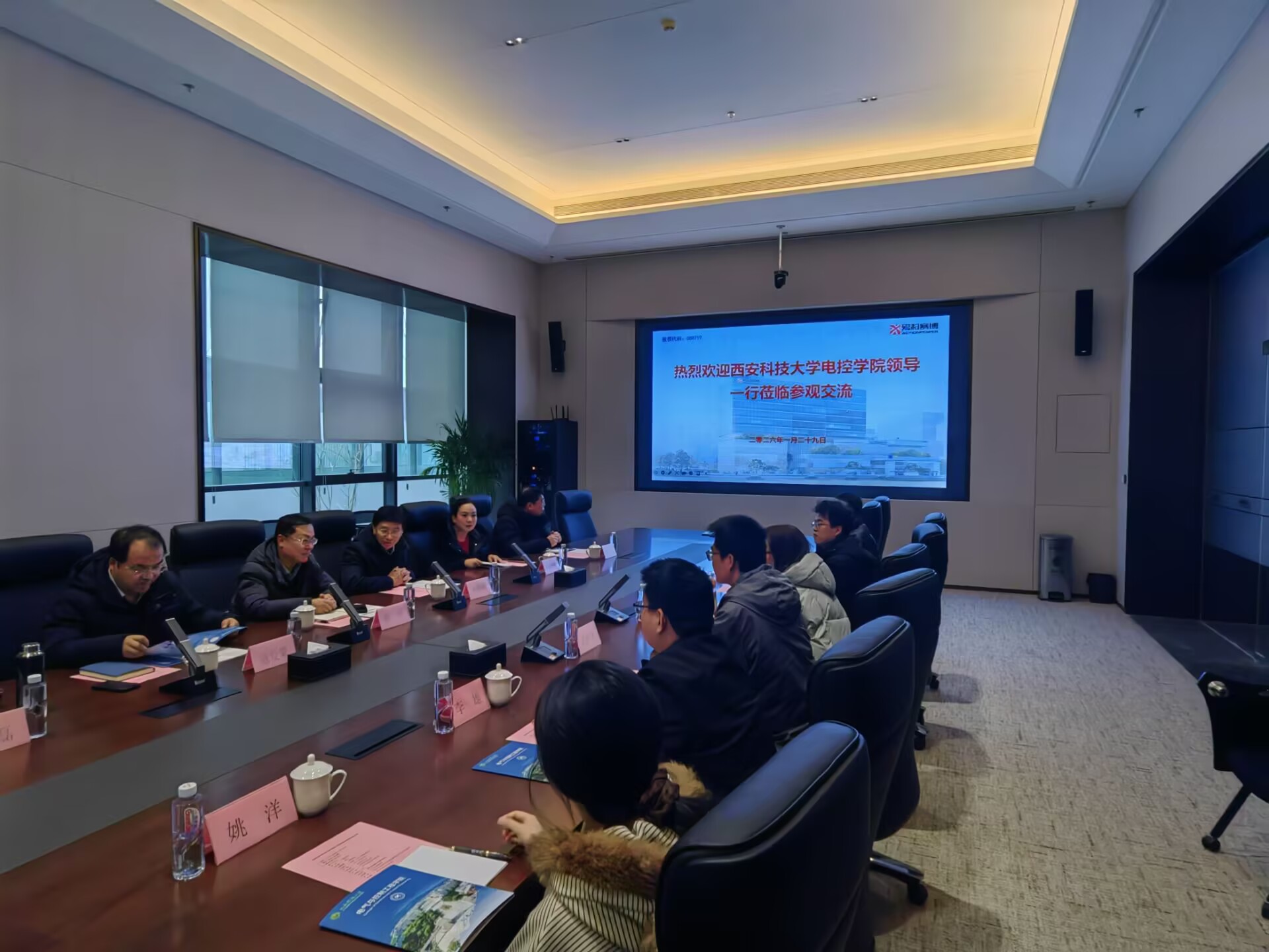 杨华对西安爱科赛博电气股份有限公司长期以来对公司、公司人才培养和就业工作的支持表示感谢。寇发荣简要介绍了公司发展概况和公司在团队建设、专业特色、人才培养及科研方向等方面的情况,并表示公司始终坚持以行业需求为导向,不断强化员工工程实践与创新能力培养。