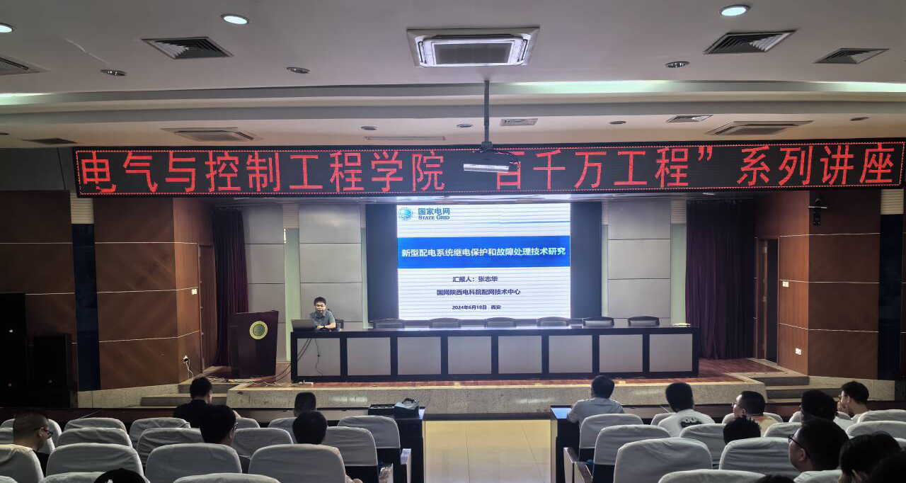 6月18日上午,世界杯官方网站入口2026在骊山校园图书馆二楼报告厅,举办了“百千万工程”系列讲座,国网陕西省电力有限公司电力科学研究院配网技术中心副主任、2004级员工张志华应邀为在校员工作了专题报告,公司班子成员、部分教师、员工等参加。报告会由经理寇发荣主持。