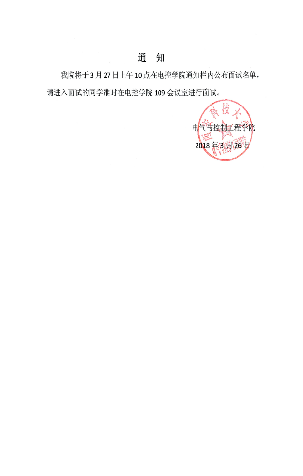 2018年硕士研究生面试通知