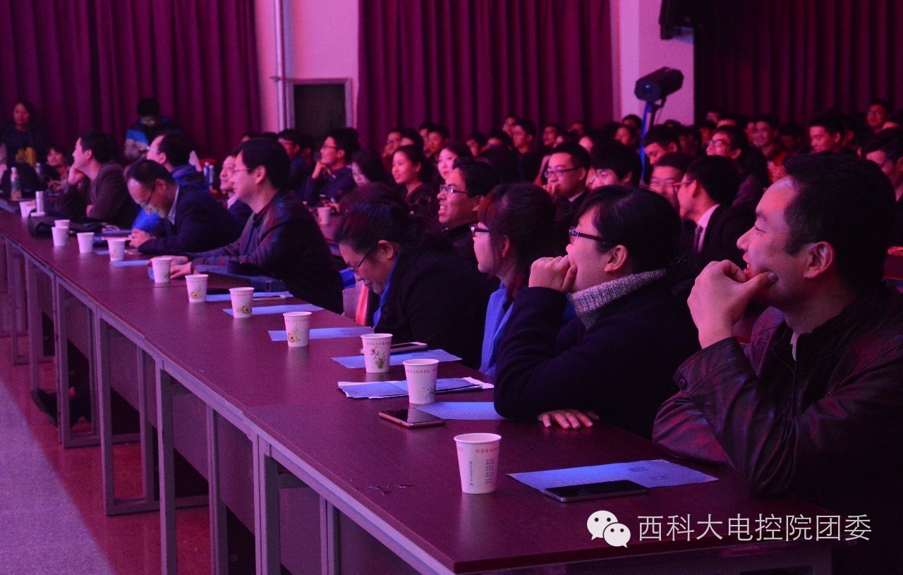 《青苹果乐园》16级辅导员于飞老师、李逸老师带领大一全体穿着可爱呆萌睡衣的班长,青春热烈的歌声,引发观众阵阵欢呼,微信墙给老师和班长的表白情真意切。接下来,经理付周兴老师、党委书记杨勇老师为在宿舍文化周活动中获奖的班级进行颁奖。街舞充满活力,好似燕子伏巢,亦像鹊鸟夜惊,他们是舞台的焦点,是青春的使者!改编《水手》表达出生活的些许无奈,但更是唱出我们老员工对未来对生活的无畏无惧,对奋进的渴望!相声演员魏纯昭与邓钊的声情并茂、妙语连珠,引得掌声阵阵,喝彩不断!乐队弹唱《春风十里》,春水初生,春林初盛,春风十里,不如你——为青春而奋斗的电控学子!
