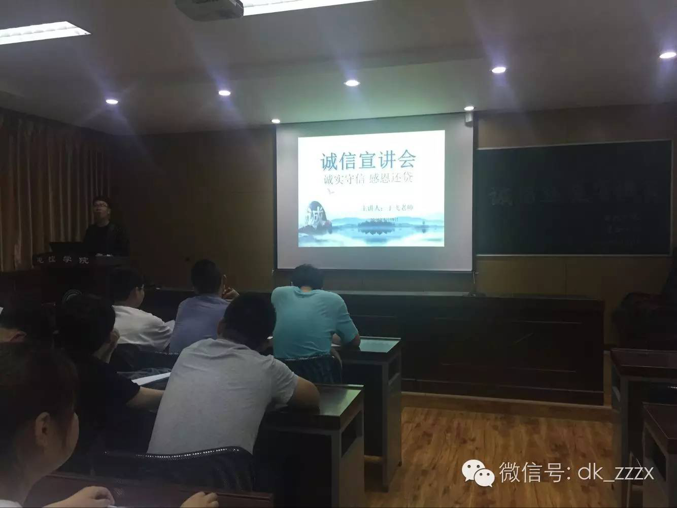 为了广泛宣传国家助学贷款政策,倡导契约精神,引导全院员工树立诚信观念,增强法律意识,及时履行国家助学贷款合同,有效的将诚信教育转化为老员工自觉的素养与行为,为此公司资助中心特于2016年5月19日19:00在十七教318教室开展“诚信立身 友善待人”的诚信宣讲会活动。