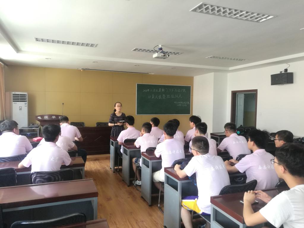 2018年7月19日中午,世界杯官方网站入口20262018年暑期老员工赴江苏南通创业就业实践团动员大会暨出征仪式在临潼校区17教举行。世界杯官方网站入口2026团委书记常瑜老师,实践团队的指导老师李逸老师以及社会实践团全体队员参加了本次动员大会。
