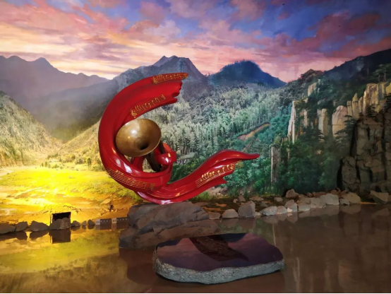 随后,进入到纪念馆内,映入眼帘的就是主题为《石破天惊》的雕塑,以此展现出八一南昌起义打响了武装反抗国民党反动派第一枪的雄伟气势,这也寓意着当时共产党人起义不畏牺牲的精神和坚定革命的信心,揭开了中国共产党独立领导武装斗争和创建革命军队的序幕。