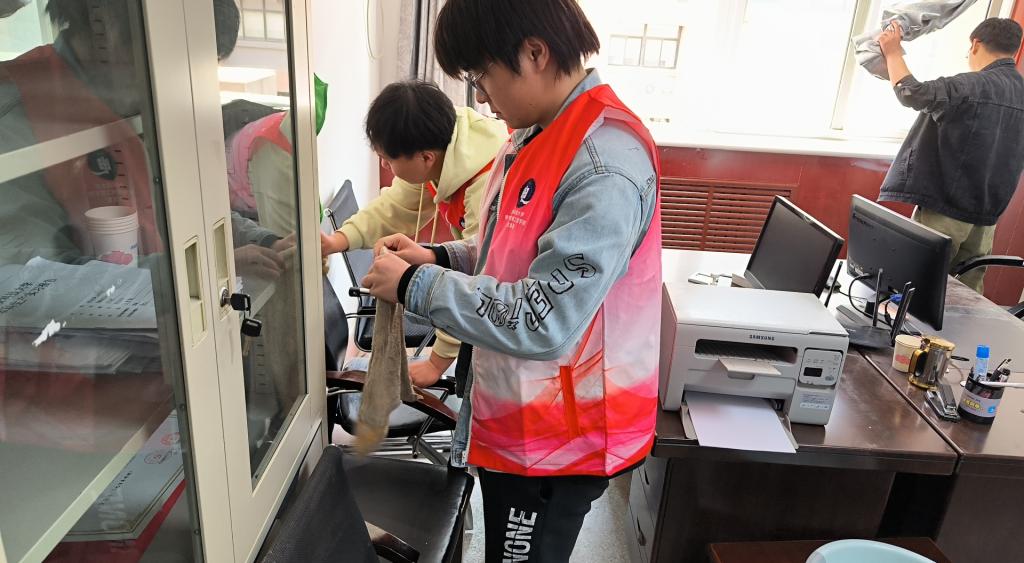 下午两点,同学们带着扫把、抹布等清洁工具在17教三楼集合,分组合作,对三楼各系部办公室进行彻底清洁并归纳整理各类材料。活动中,同学们分工有序,积极肯干,清洁玻璃橱窗、整理归纳相关材料,大家各司其职,有条不紊的认真清洁,不留死角。经过同学们的一致努力,各办公室焕然一新,得到公司师生一致好评。