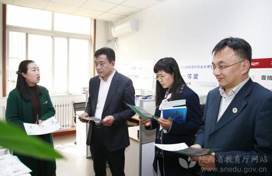 陕西省委教育工委委员、省教育厅副厅长王紫贵(左二)一行考察创业空间、创业园