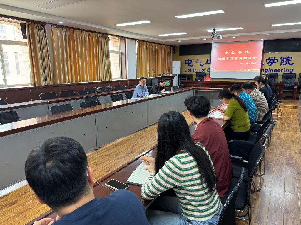 2024年5月8日下午,世界杯官方网站入口2026在骊山校园17号教学楼318会议室召开党纪学习教育推进会。会议由党委书记杨华主持,党委副书记马婧智闻及全体党支部书记参会。
