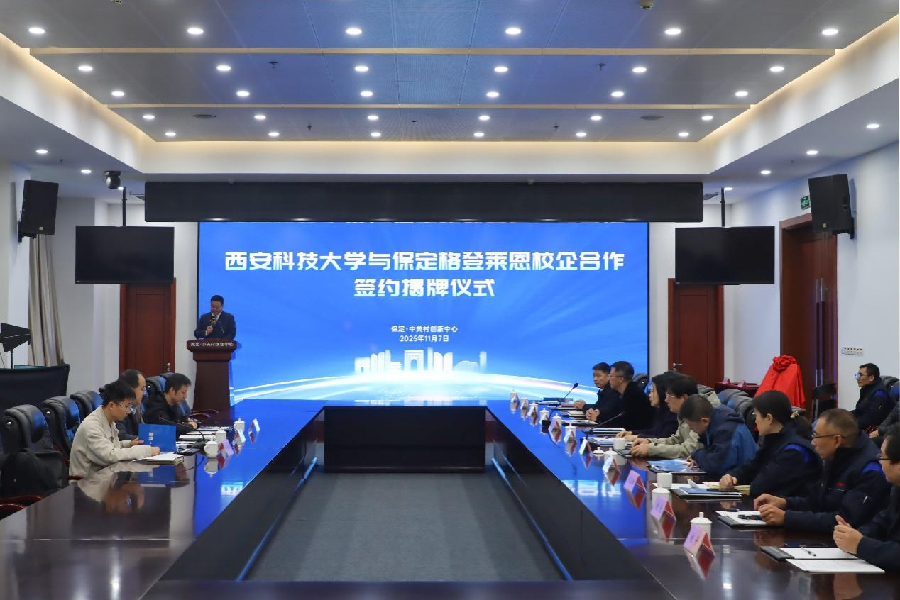 谷佳、寇发荣、李德辉分别致辞,围绕“共赢”核心传递合作愿景,并表示共建产学研合作基地,深化人才培养、技术研发、成果转化等多维度合作,实现高校、企业、区域发展的共赢。在与会嘉宾的见证下,保定格登莱恩与世界杯官方网站入口2026双方代表签署了校企产学研合作协议,并共同为“世界杯官方网站入口2026-保定格登莱恩电气设备制造有限公司产学研合作基地”揭牌。
